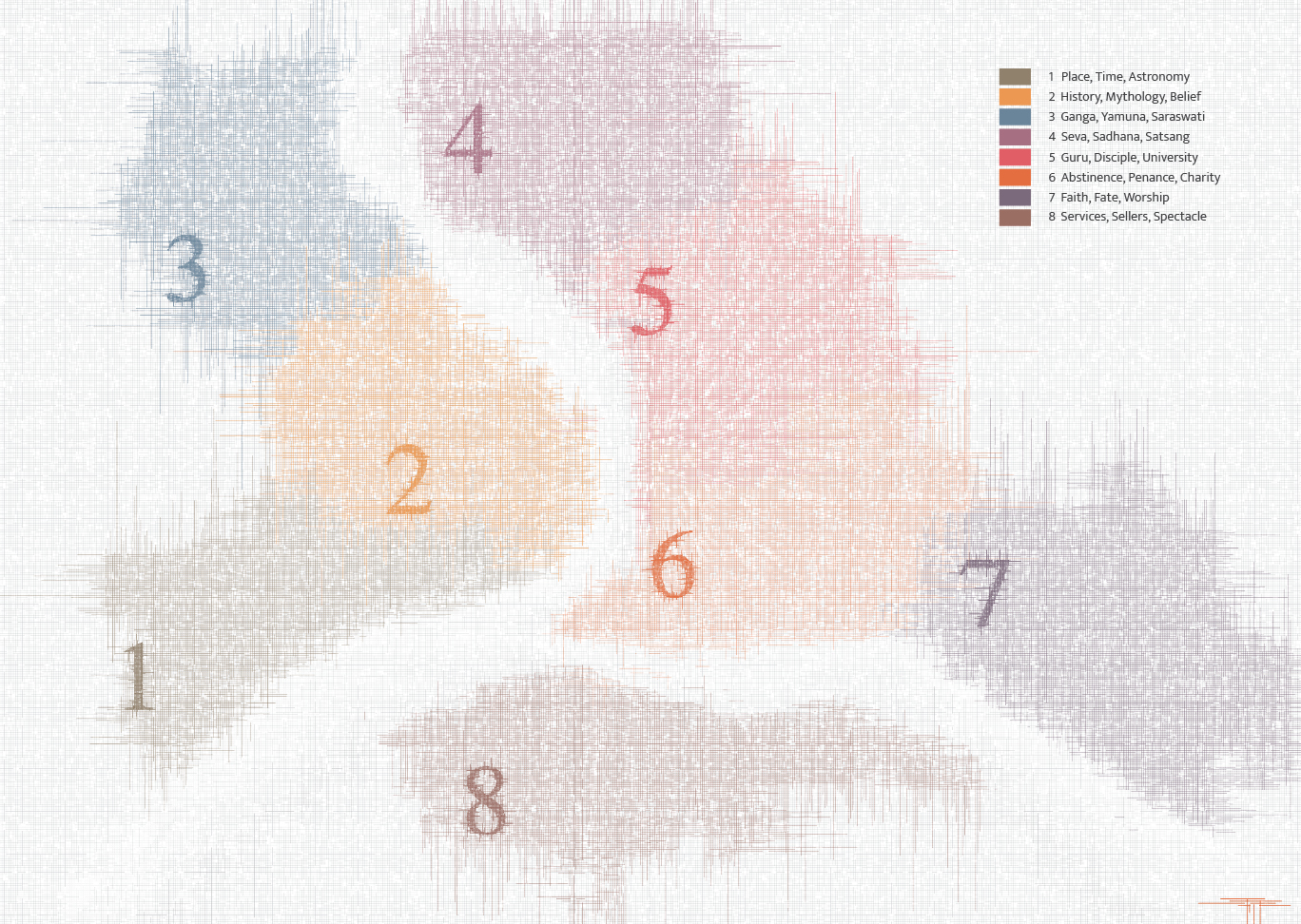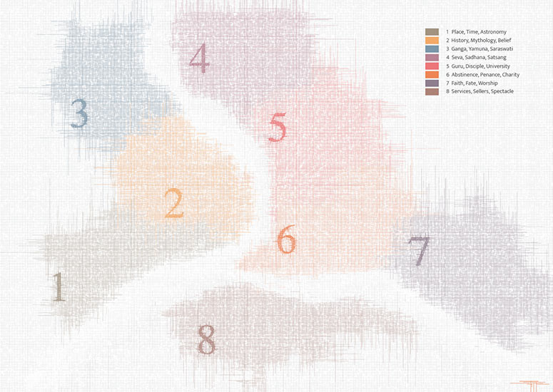 of which is seen within the volume corresponding to the particular aspect of the Kumbh Mela. The key on the map explicates this.