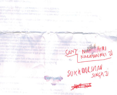 Mauni Baba was to the saffron-clad saint what the saffron-clad saint was to the man with the turban. The reverence shown for the higher saint and gracious dealings with the devotees sustains a delicate harmony within the camp. The man wearing the turban evidently constituted another level within the hierarchy and eager to get to know more, I rushed over to where he stood. ‘My name is Sukhdarshan Singhji’, he replied and I jotted it down on the piece of paper I had with me at the time. It was important that we had the names and as much background information on all the people we spoke with at the Mela. I also asked for the name of the saffron-clad saint before whom he just bowed. He replied and as I put pen to paper to write the name just below his own, I was startled by a loud, ‘Arre!’ Sukhdarshanji looked at me disapprovingly and questioned how I could write Sant Narayan Puriji, the name of the saffron-clad saint, below his.